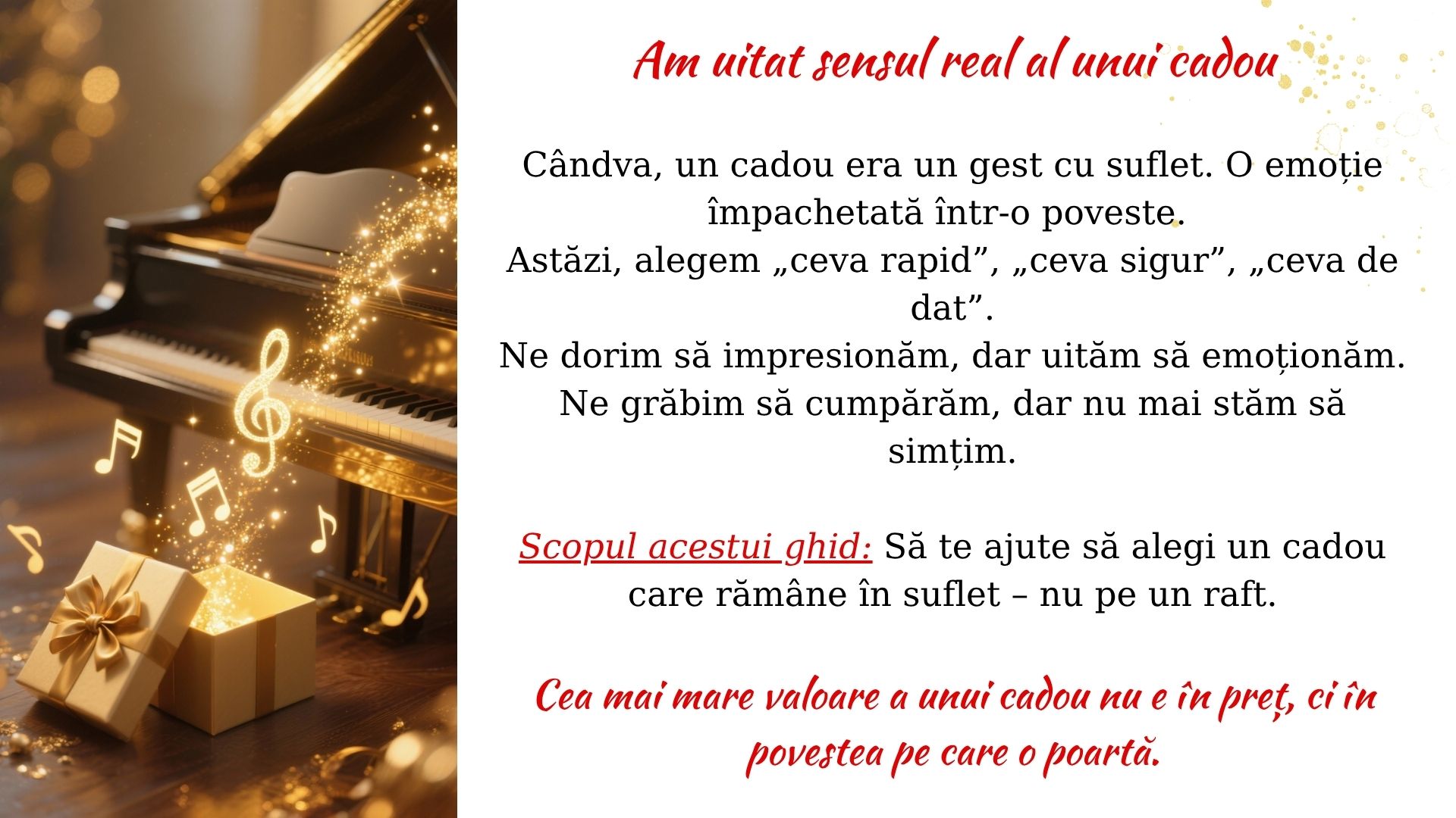 „M-a făcut să-mi dau seama cât de mecanic ofeream cadouri. Ghidul ăsta m-a oprit puțin și m-a învățat să dăruiesc din inimă, nu din reflex.